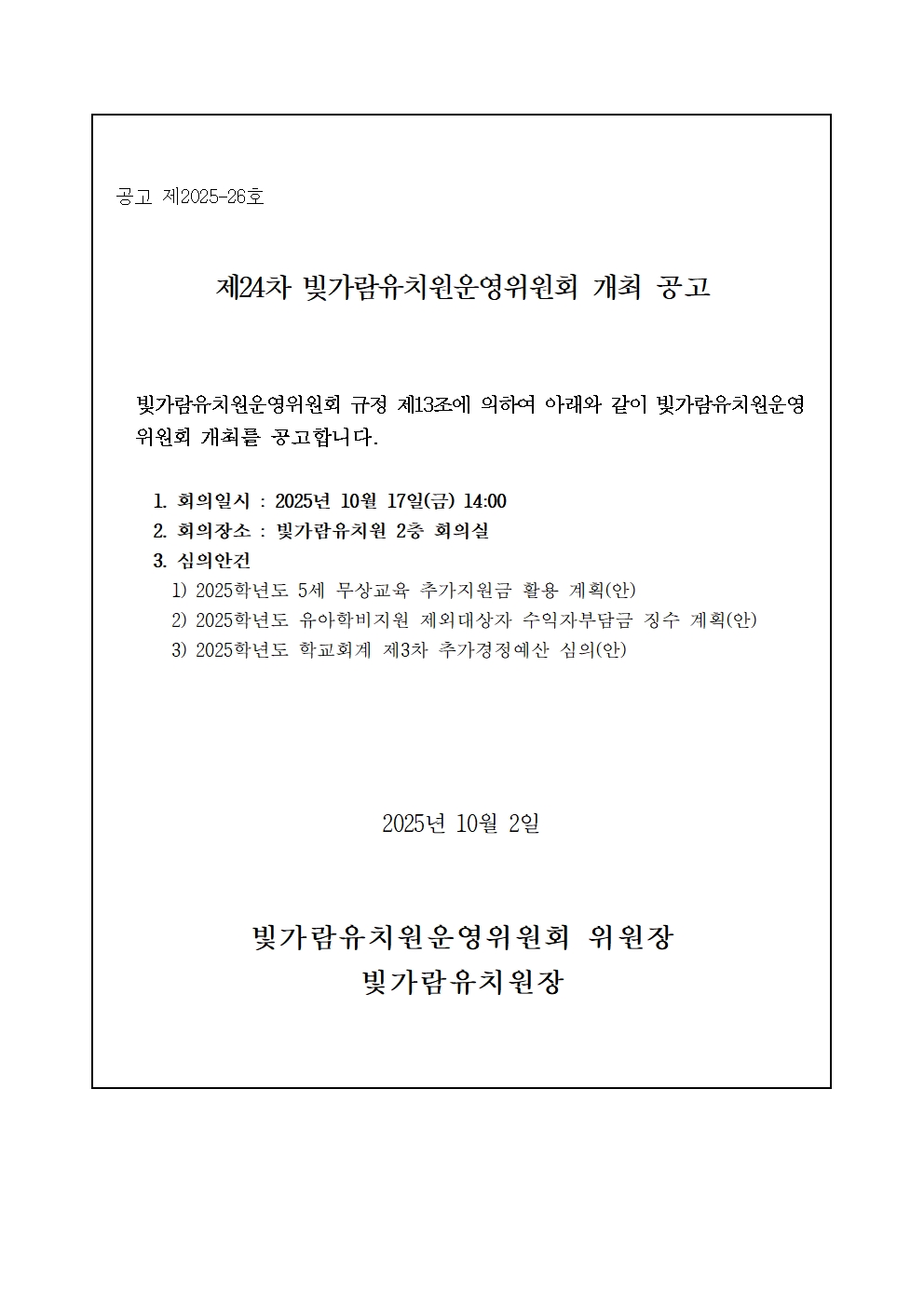 [ÀϹÝ] Á¦24Â÷ ºû°¡¶÷À¯Ä¡¿ø¿î¿µÀ§¿øÈ¸(ÀÓ½Ãȸ)°³ÃÖ °ø°í